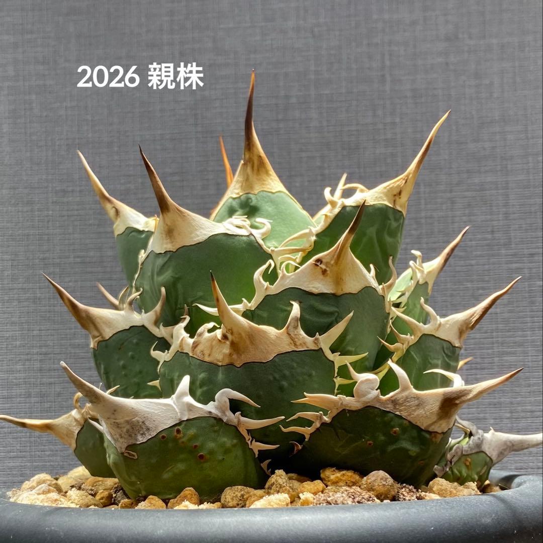 ※2月フォロー割あります(200円)★速達発送★★鉢ごと発送★★安心の発根株★★安定株★★大人気品種★撮影2/9アガベ チタノタ 太陽神錦白中斑TC メリクロン株※購入時の名前になります中国輸入株販売元 上澳園芸参考 宝珠錦/FO-076錦1/13植え付け。ぐらつきも減り春が楽しみです。太く美しい斑が安定して出てきます。1月植え付け株発根サインあり▶︎鋸歯の変化 ぐらつき減少まだしっかり活着していませんのでぐらつかないように固定して梱包します。※活着したらお値段500円変わります※活着株もご用意ありますのでお気軽にコメントください 写真の棘、葉の状態をご確認ください。※2026年1月入荷株鉢番号③【撮影】2/9【発送】普通郵便 第四種 速達追跡補償なし 土日祝配達なし鉢が乾いてからの発送となります【販売元】上澳園芸【タグ】デザインお選び可能初回メッセージからご希望お知らせください。ご希望ない方はデザイン①が付属します。【発送日】ご入金から3日以内