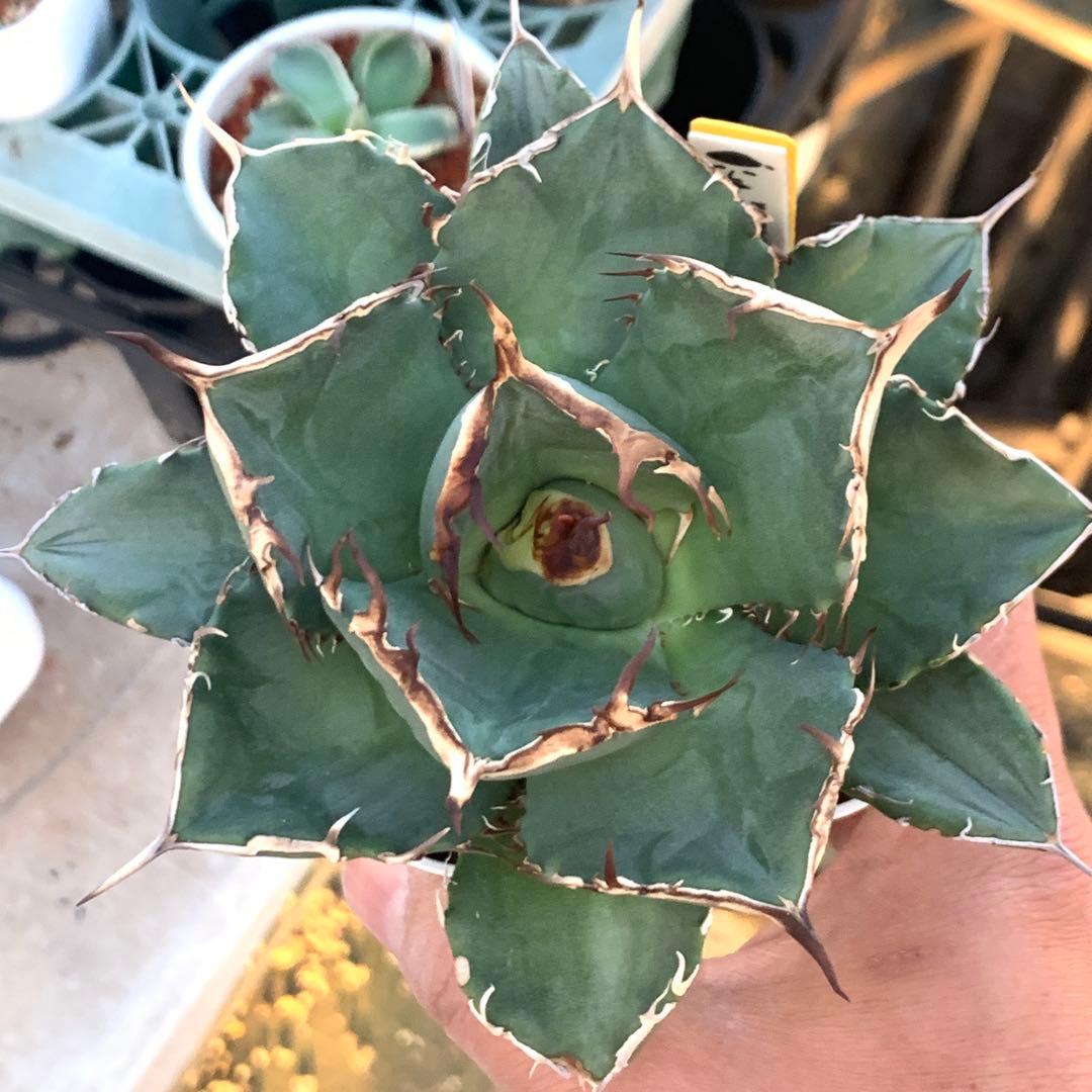 アガベ ホリダ USワイルド株m&m アイアン鉢。鉄鉢鉢込み発送予定してます発根済み、根は完全に回ってます。ほぼ水あげてない株です。かなりかっこいいです、刺さる方、気に入った方どうぞ。室内にて、育成ライトにて管理中。- 植物の種類: アガベ ホリダ- 色: 緑- 形状: 尖った葉- 鉢の素材: 鉄- 鉢の色: 茶色磨くとシルバーご覧いただきありがとうございます。